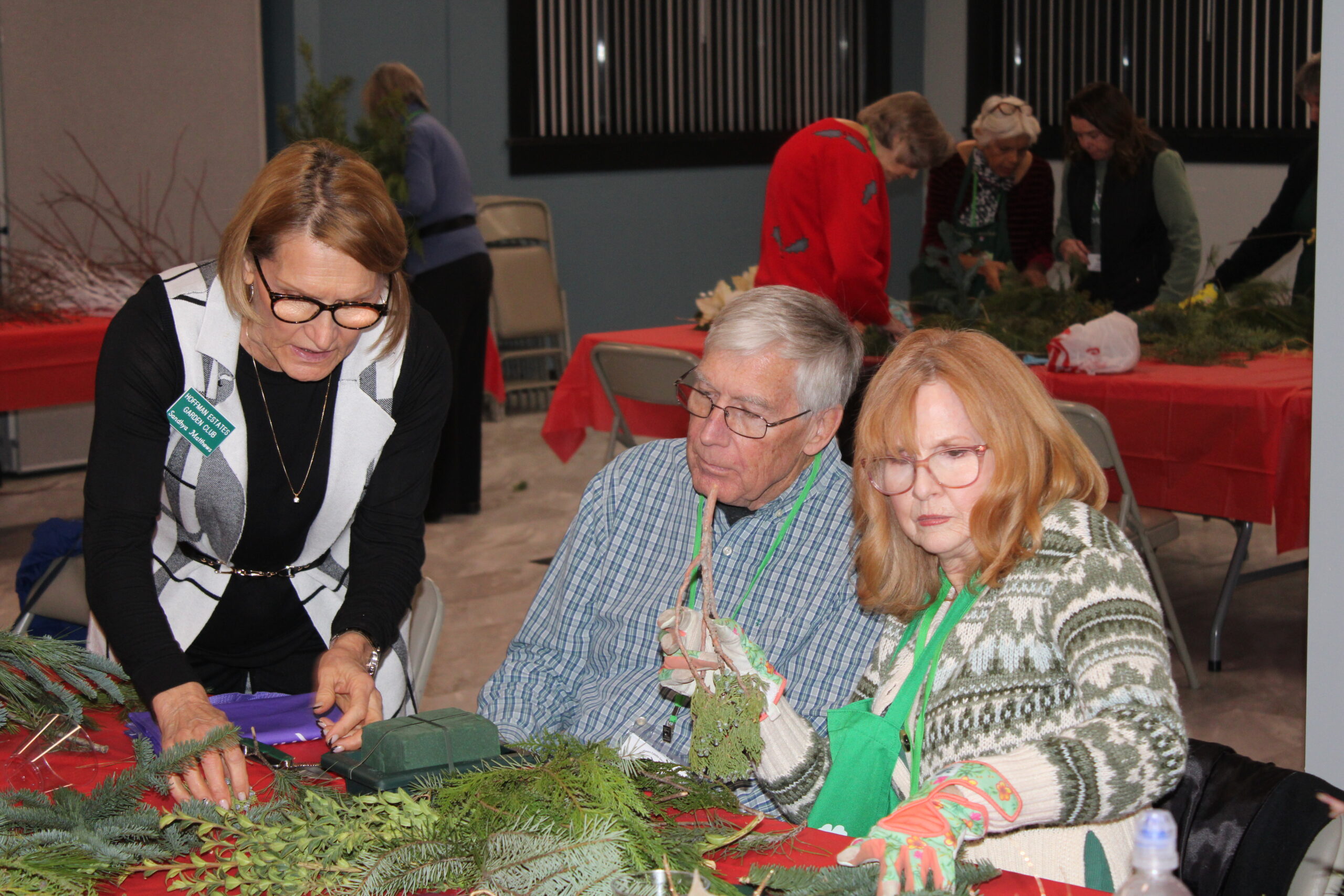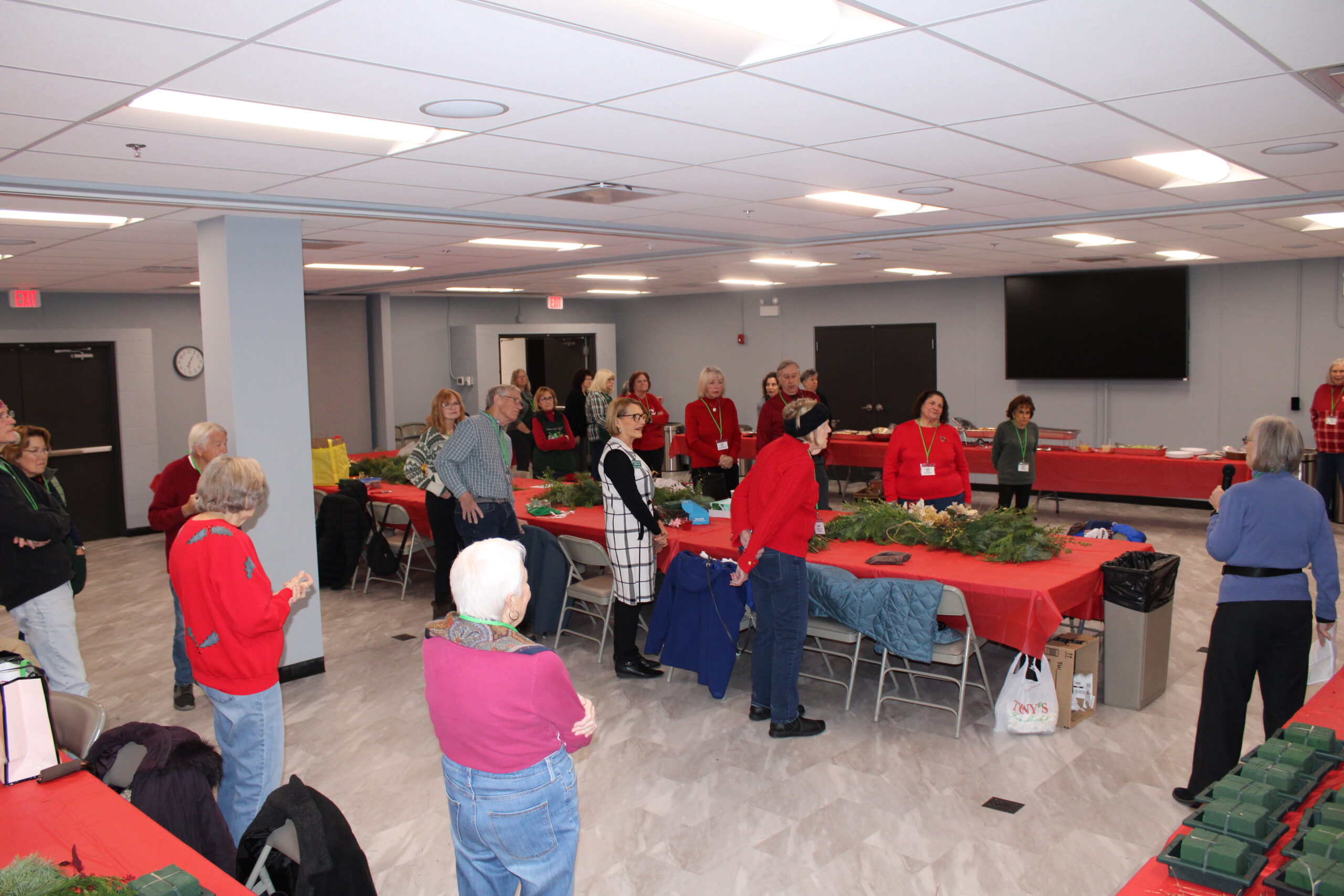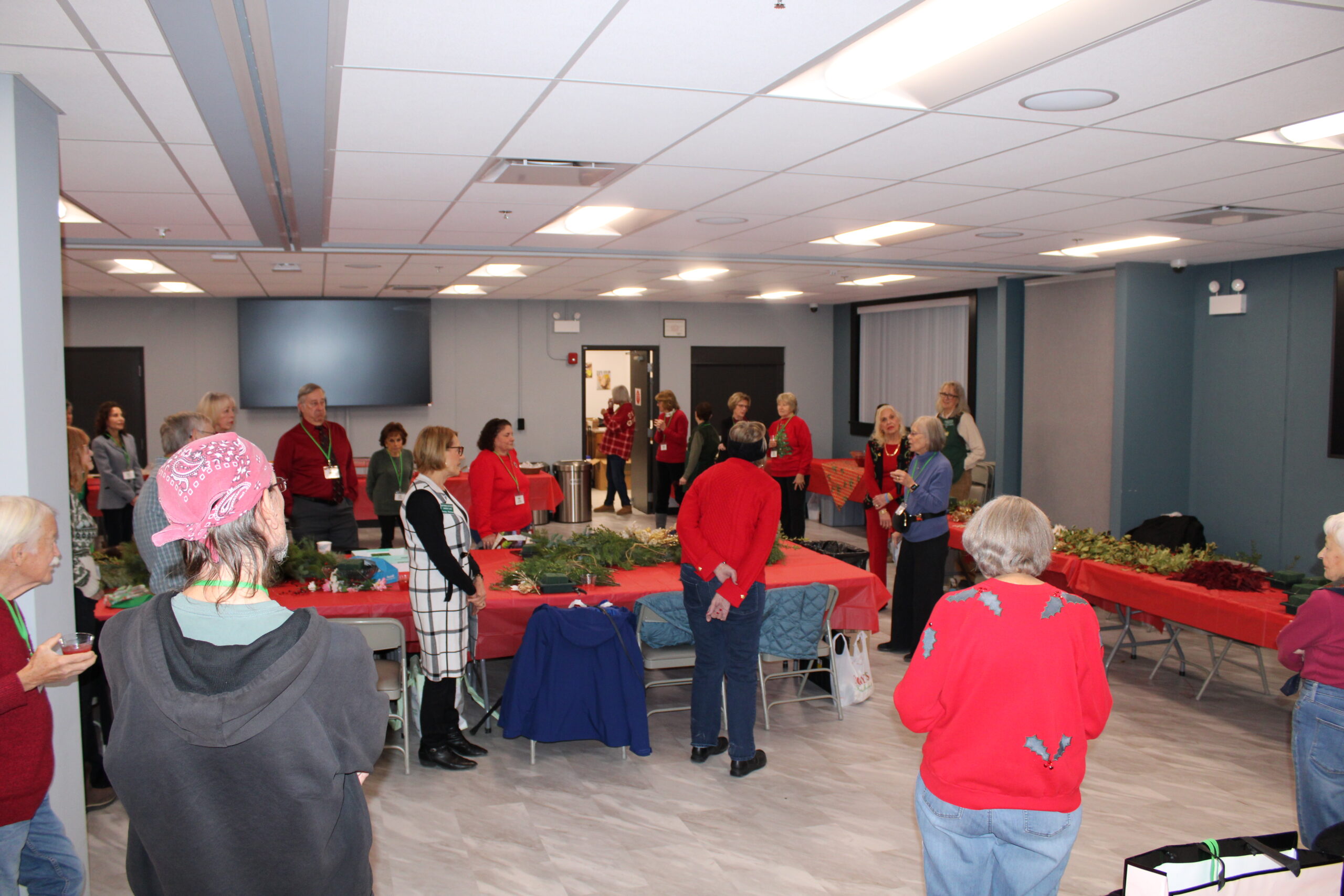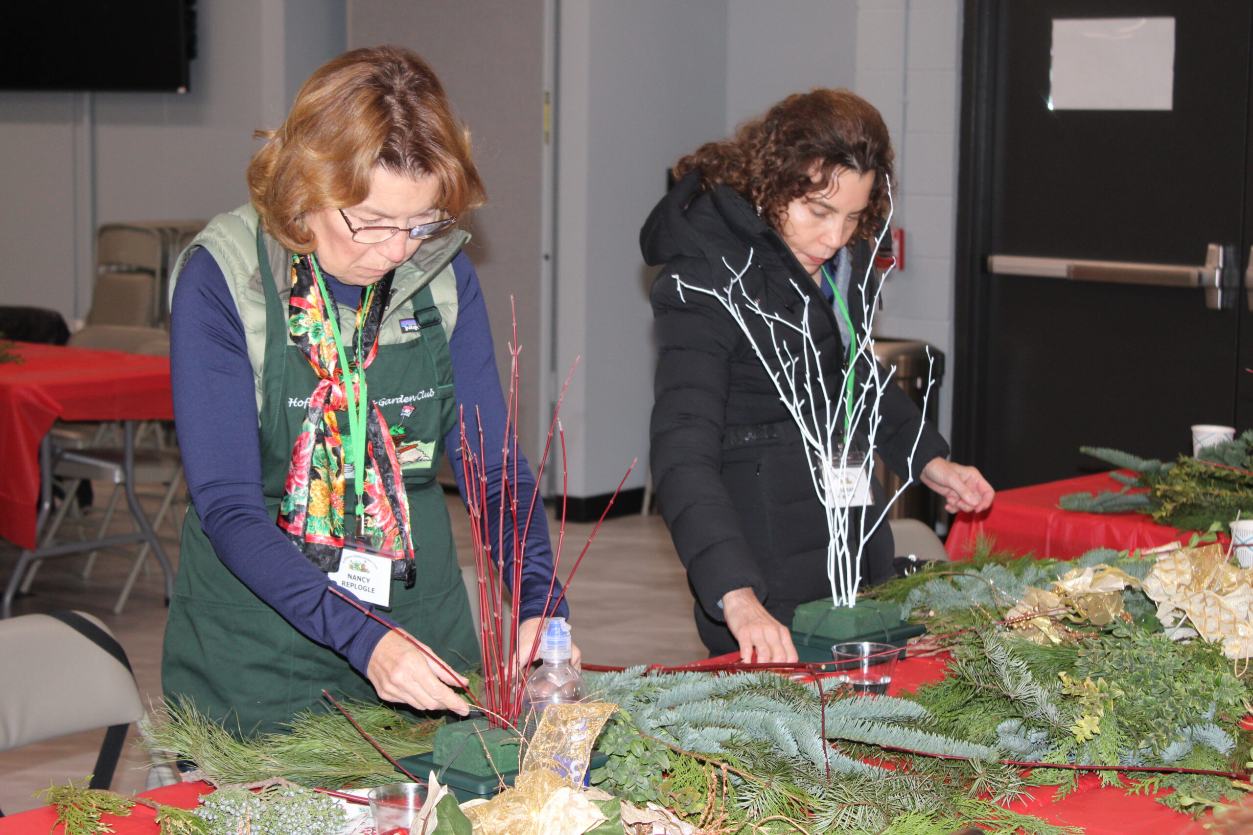 Our holiday party was an event to remember with beautifully decorated tables, delicious food – thanks to our members, and Christmas music. A fantastic selection of evergreens, flowers, and decorations (thanks Susan and Nancy) allowed members to create their own unique centerpieces. Thanks to all our volunteers who assisted with set-up and clean-up.